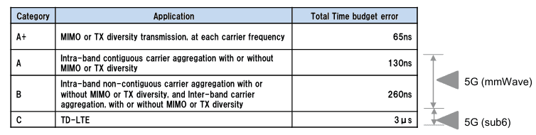 تتطلب شبكات الجيل الخامس (5G) من الجيل التالي تزامنًا عالي الدقة لتمكين العقد على امتداد الشبكة من تحقيق متطلبات دقة زمنية صارمة تصل إلى ±130 نانوثانية. بينما كانت شبكات الجيل الرابع (4G) تعتمد على أجهزة استقبال GPS في كل موقع خلوي كمصادر للوقت، تستخدم شبكات الجيل الخامس بروتوكول التوقيت الدقيق IEEE 1588 (PTP) كطريقة رئيسية لمزامنة الوقت بين الأجهزة.